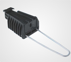 The clamp is designed to anchor insulated service lines with 2 to 4 conductors. The clamp is composed of a body, 2 wedges and removable and adjustable bail.