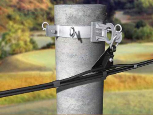 Stainless steel straps are used to attach cable protection, anchoring and suspension assemblies and other devices mainly to poles.