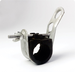 The clamp is designed to anchor insulated service lines with 2 to 4 conductors. The clamp is composed of a body, 2 wedges and removable and adjustable bail.