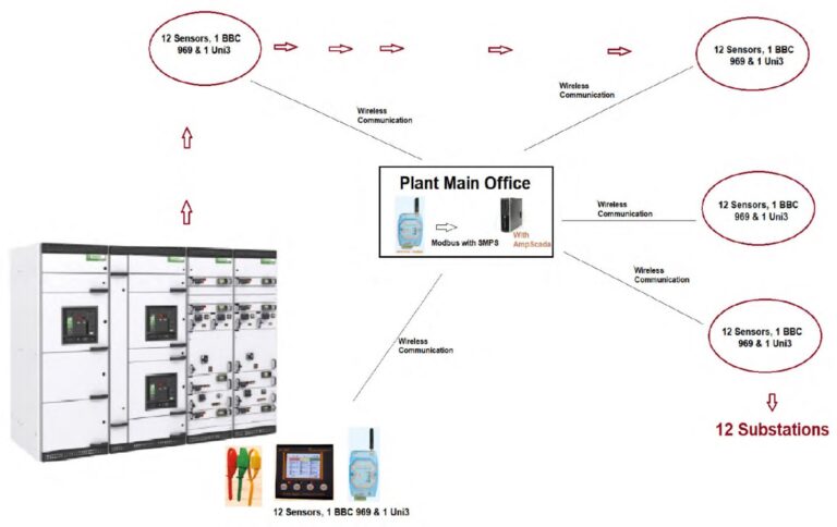 Monitoring of LV Panel Bus Bar Temperature in 12 Substations remotely connected over Wireless Communication :